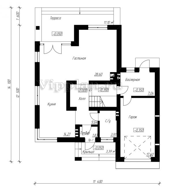 | Размеры дома: | 14.1м×11.4м |